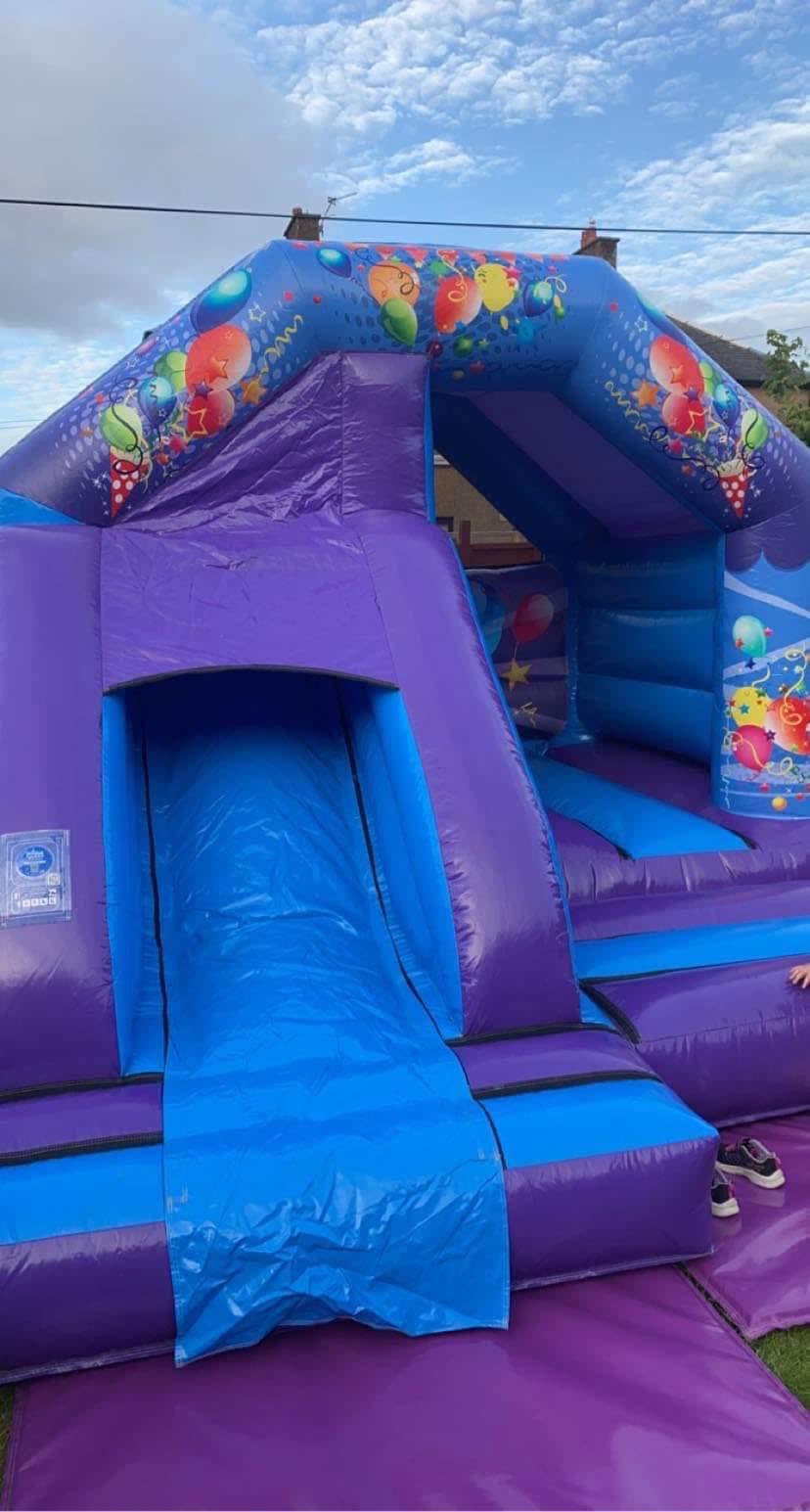 Looking to amp up your event in Scotland? Our bouncy castle hire Party Time Front Combi Slide in Larbert, Falkirk, Stirling, Glasgow, Edinburgh, Fife, and Livingston is your ticket to a successful and entertaining day. Our team ensures a seamless delivery and setup process, so you can focus on enjoying the festivities.
