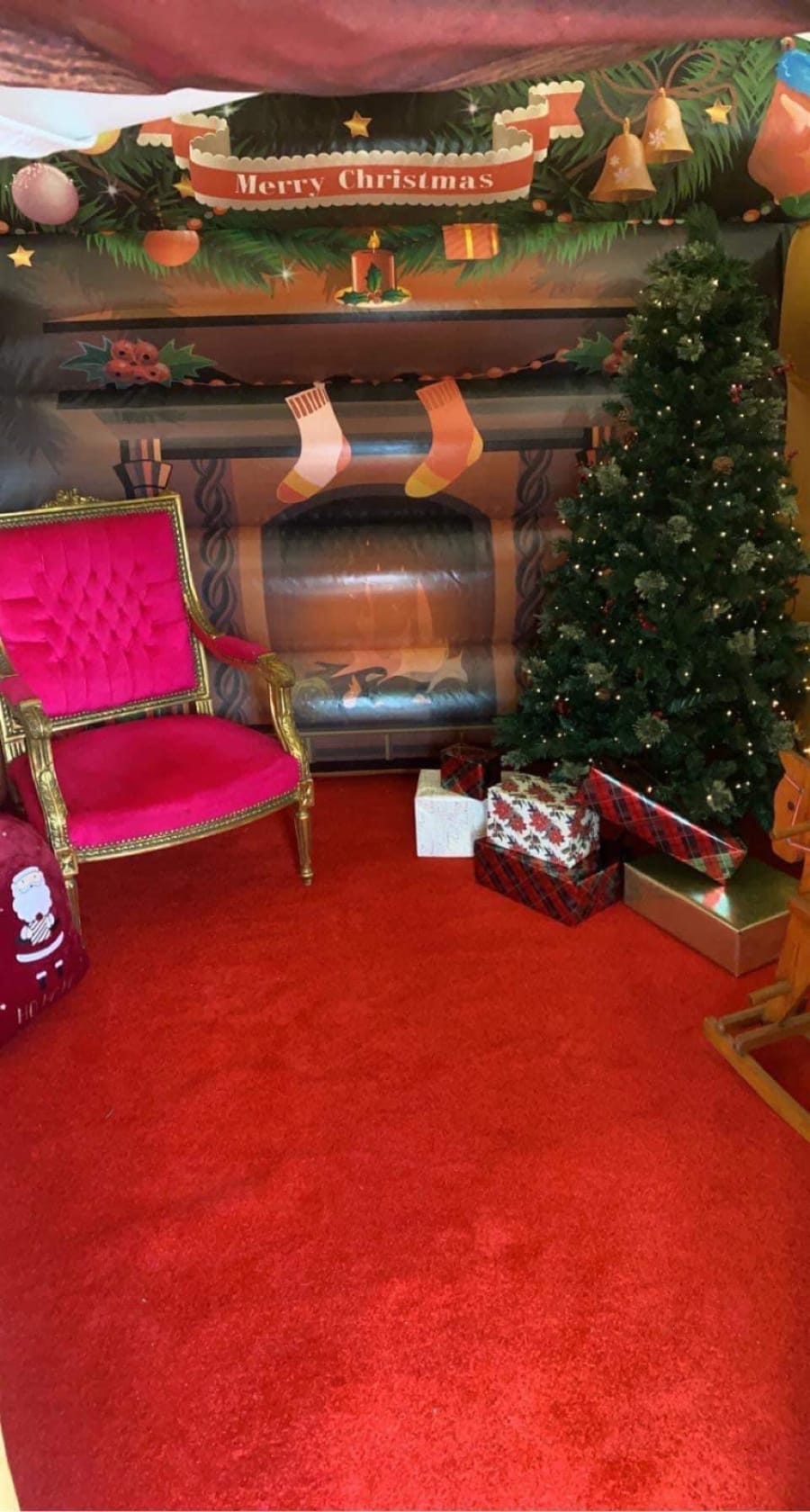 Our Deluxe Santa's Grotto comes complete with everything you need to create a truly memorable experience. From a charming picket fence and a luxurious red carpet to Santa's iconic chair and a beautifully decorated Christmas tree, every detail is carefully crafted to immerse visitors in the magic of the North Pole.